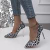 High Heels 2024 New Women's PU Leather Casual Office Slip-on Stiletto Heels Fashion Pointed Nightclub Leopard Design Dance Shoes
