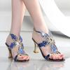 fashion Women Genuine Leather Fashion Sandals Pumps Summer Rhinestone High Heel Wedding Party Shoes Crystal Open-toe Sandals