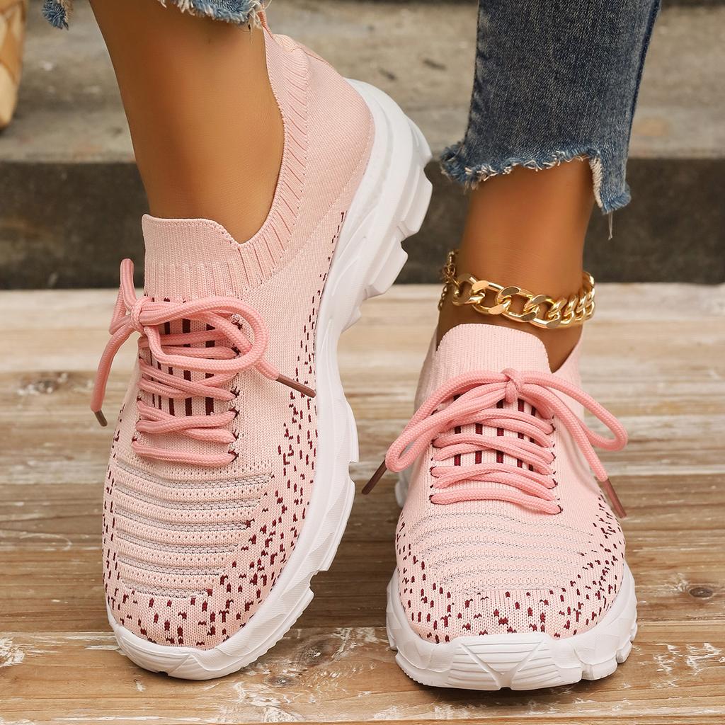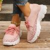 fashion Pink Knitting Platform Sneakers for Women 2024 Spring Mesh Breathable Sports Shoes Woman Non Slip Thick Sole Running Sneakers