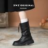 Fashion Retro Western Denim Mid-calf Boots for Women Designer Platform Ladies Shoes Fashion Soft-soled Autumn Winter Ankle Boots Female