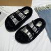 Fashion Korean Belt Buckle Designer Fur Slippers for Women Fashion Casual Autumn Winter Cotton Slippers Shoes Ladies