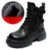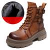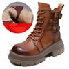 6CM Women Mid Calf Boots 2024 Autumn Winter Quality Genuine Leather Thick High Heel Platform Wide Head Lace-Up Retro Boots