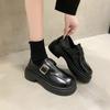 2024 New Casual Women's Sports Shoes Thick-soled British Style Round-toe Autumn Flat-soled Buckle Low-top Shoes