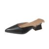 Fashion Shoes Female 2024 Sexy Pointed Toe Female Mules Fashion Warm Women's Fur Slippers Comfortable Square Heel Winter Daily Slippers