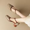 Fashion Summer New Square Head Hollowed-out Bowhead Sandals Women's Medium Heel Chunky Breathable High Heels