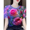 Men's and women's short sleeved T-shirt, rose 3D printing, fashionable Harajuku round neck shirt, 6XL men's and women's T-shirt