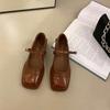 Honkongo juoda kvadratinė galva Madingi lengvi viengubi batai Moteriški batai su vienu mygtuku storu kulnu Mary Jane maži odiniai batai