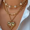 18K gold titanium steel three-layer stacked love pendant necklace women's high-grade light luxury pearl heart-shaped necklace does not fade