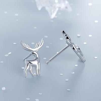 Earrings Silver Full Of Diamonds Small Elk Stud Earrings Korean Temperament Small Cute Cold Wind Elegant Earrings Women