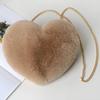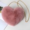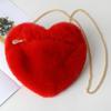 Cute Sweet Love Heart Shaped Women's Crossbody Bags Fashion Soft Plush Ladies One Shoulder Bag Comfortable Fluffy Solid Color Chain Female Handbags