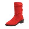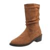 Women's Shoes on Sale Sleeve Women's Boots Autumn Round Toe Suede Solid Middle Tube Chunky Heels Fashion Boots Zapatos De Mujer