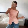 Women's Summer New Solid Colour Polo Collar Slim Pit Stripes Sleeveless Knitted Vest