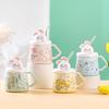 Cute Rabbit with Lid Straw Cup Cartoon High-value Large Capacity Souvenir Mug Girl Couple Ceramic Cup Set