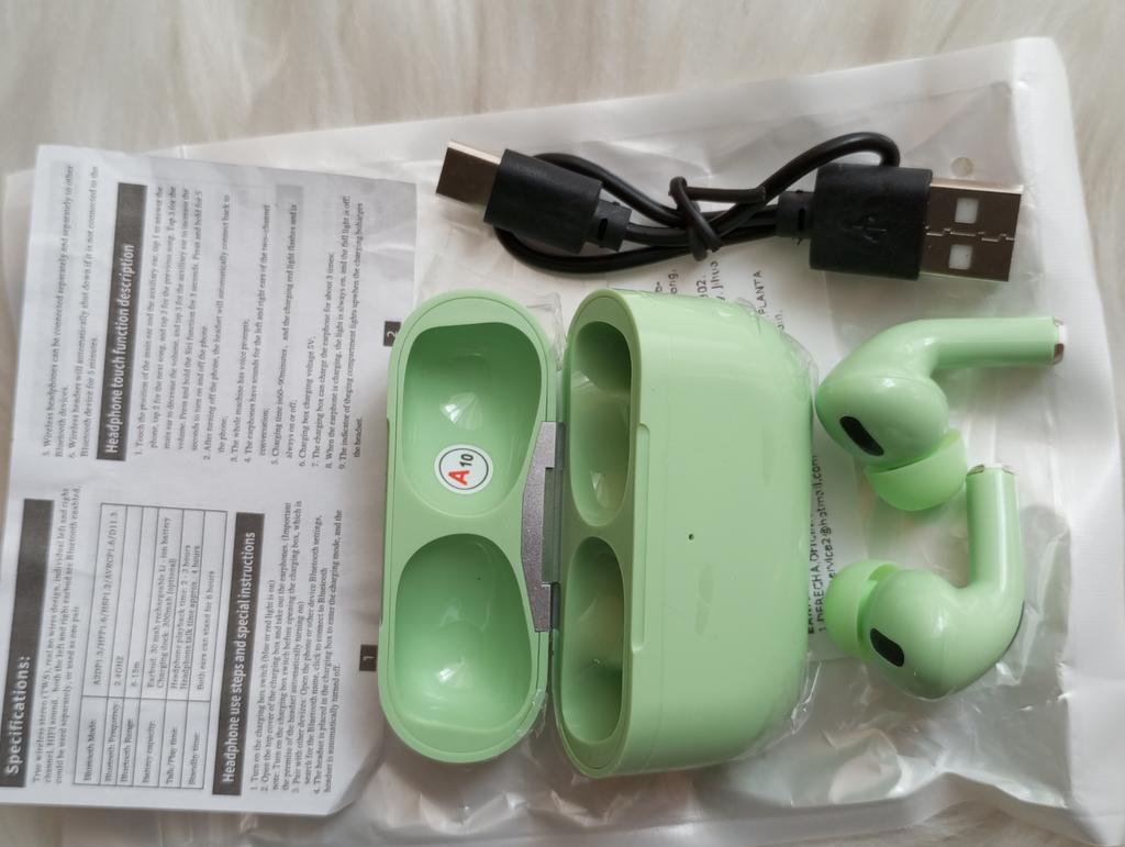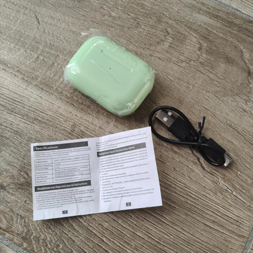 Belaidės įdedamosios ausinės (TWS - True Wireless Stereo). 📌Dizainas: žalias blizgus korpusas, intrakanalinė konstrukcija su silikoniniais ausų antgaliais. 📌Dėklas: Kompaktiškas įkrovimo dėklas su būsenos indikatoriumi priekinėje panelėje, kuris naudojamas ausinėms laikyti ir įkrauti. Apskritai, pirkiniu esu patenkinta. Kiek tarnaus, parodys laikas👍