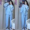 Women's Oversized Waffle Knit Two-Piece Sweater and Pants Set - Casual Loose Fit for Spring and Fall