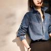 Vintage Hong Kong Style Blue Denim Shirt Women's Spring and Autumn Layering French Top