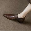 Premium soft leather thick heel deep mouth single shoes women's autumn 2025 new knitted small square head retro style small leather shoes