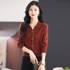 Moteriškas prigludęs kardiganas su atvartais ir sagomis, liekninantis juosmenį, ilgomis rankovėmis viršutinis drabužis