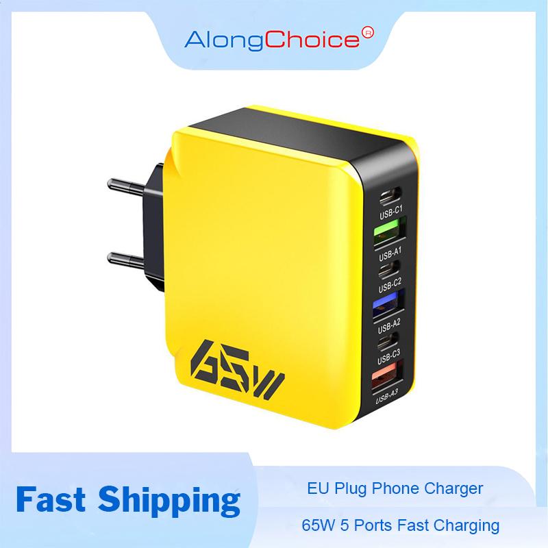 6 prievadų telefono įkroviklis greito įkrovimo QC3.0 įkroviklis PD + USB 65W super įkrovimas skirtas iPhone Xiaomi Huawei