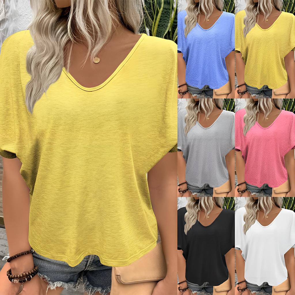 This stylish T-shirt features a trendy V-neck design with a pleated front, offering a casual yet fashionable look. Made from high-quality cotton, it ensures a soft and comfortable feel against the skin. The loose fit provides easy movement and a relaxed style, while the short sleeves make it perfect for warm weather. Available in a variety of vibrant candy colors, this T-shirt is an ideal choice for adding a fun pop of color to your wardrobe.