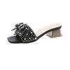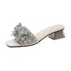 2025 new Internet celebrity thick heel cool slippers women wear summer fairy style fashion bow rhinestone slippers