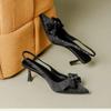 Bow Patent Leather Slingbacks Heels New Temperament Women Stilettos Shoes Elegant Pointed Toe Loop Strap Pumps For Woman