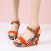 Women's open-toed sandals, high heels and platform casual wedges, vintage ethnic style printed shoes, new for summer