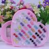 Korean Fashion Imitation Pearl Earrings Set – 36 Pairs with Peach Heart Box, Free Shipping