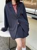 Luxi Women's High-End Korean Casual Suit: Cuff-Stitched Blazer + Pleated Skirt Set 8719