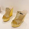 Liyke Summer Breathable Mesh Women's 14CM Wedges Slippers Fashion Open Toe Gold Silver High Heels Platform Sandals Female Shoes