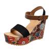 Women Sandals Shoes Printing Slope Heel High Waterproof Platform Ladies Ankle Strap Female Round Toe Summer Fashion Colorful