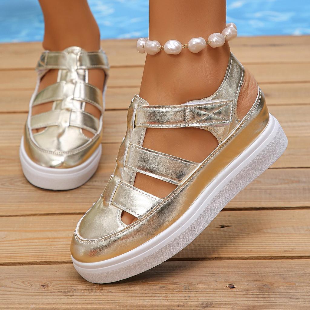 Summer women's Slope heel thick soled toe sandals Roman Baotou Casual Cool Single Shoes Thick Bottom Velcro Beach Sandals for Women