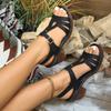 Vasariniai aukštakulniai moteriški vientisos spalvos T formos dirželis su vienu dirželiu, laisvalaikio neslystantys stambūs sandalai