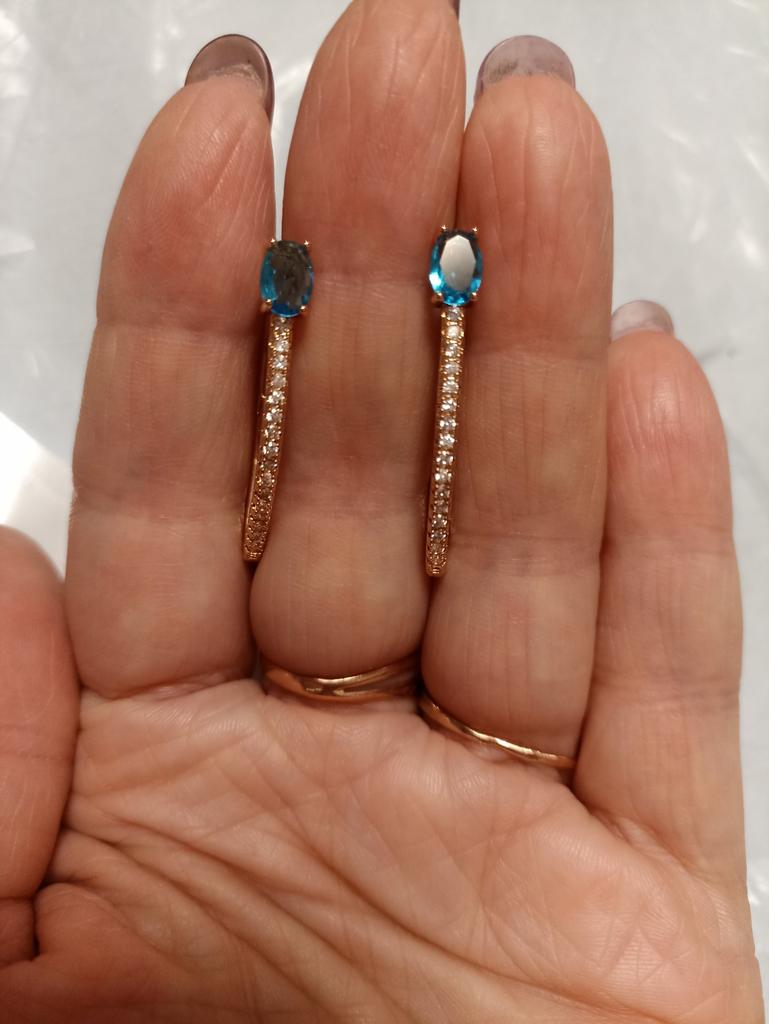 Women's Luxury V-shaped Earrings Oval Aqua Blue Zircon Earrings for Women Girls Wedding Party Jewelry Gifts