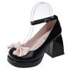 2024 Bowtie Ankle Strap Pumps for Women Balck White High Heel Platform Mary Janes Woman Square Heel Patent Leather Party Shoes
