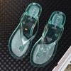 PVC Transparent Beach Flip Flops for Women Korean Style Jelly Crystal Thong Sandals, Summer Trendy Flat Outdoor Slides for Girls