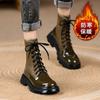 Ryškios odos Martin batai moterims rudens ir žiemos 2024 nauji kolegijos stiliaus lakinės odos trumpi batai ryškūs priekyje suvarstomi liekninantys lokomotyvo batai