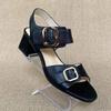 High heels women's 2024 summer new elegant retro square head word with rear zipper open toe thick heel sandals women