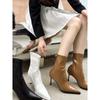 High heels women's autumn and winter soft leather pointed thin boots 2024 new thin heels women's boots white high heels short boots women