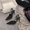 Black high heels women's summer 2024 new sexy rhinestone pointed one-word buckle bag head shallow mouth sandals women