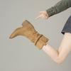 Retro suede western cowboy boots women's 2024 autumn new thick heel pointed pleated piled boots slim knight boots