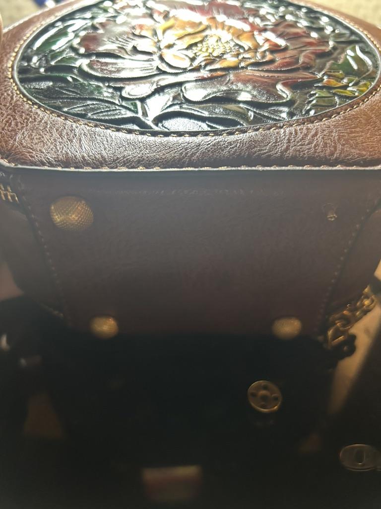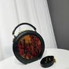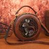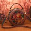 Ethnic Vintage Round Crossbody - Handmade Carved Flower Women's Shoulder Bag Minimalist Texture Commuter Large Capacity Tote Bag