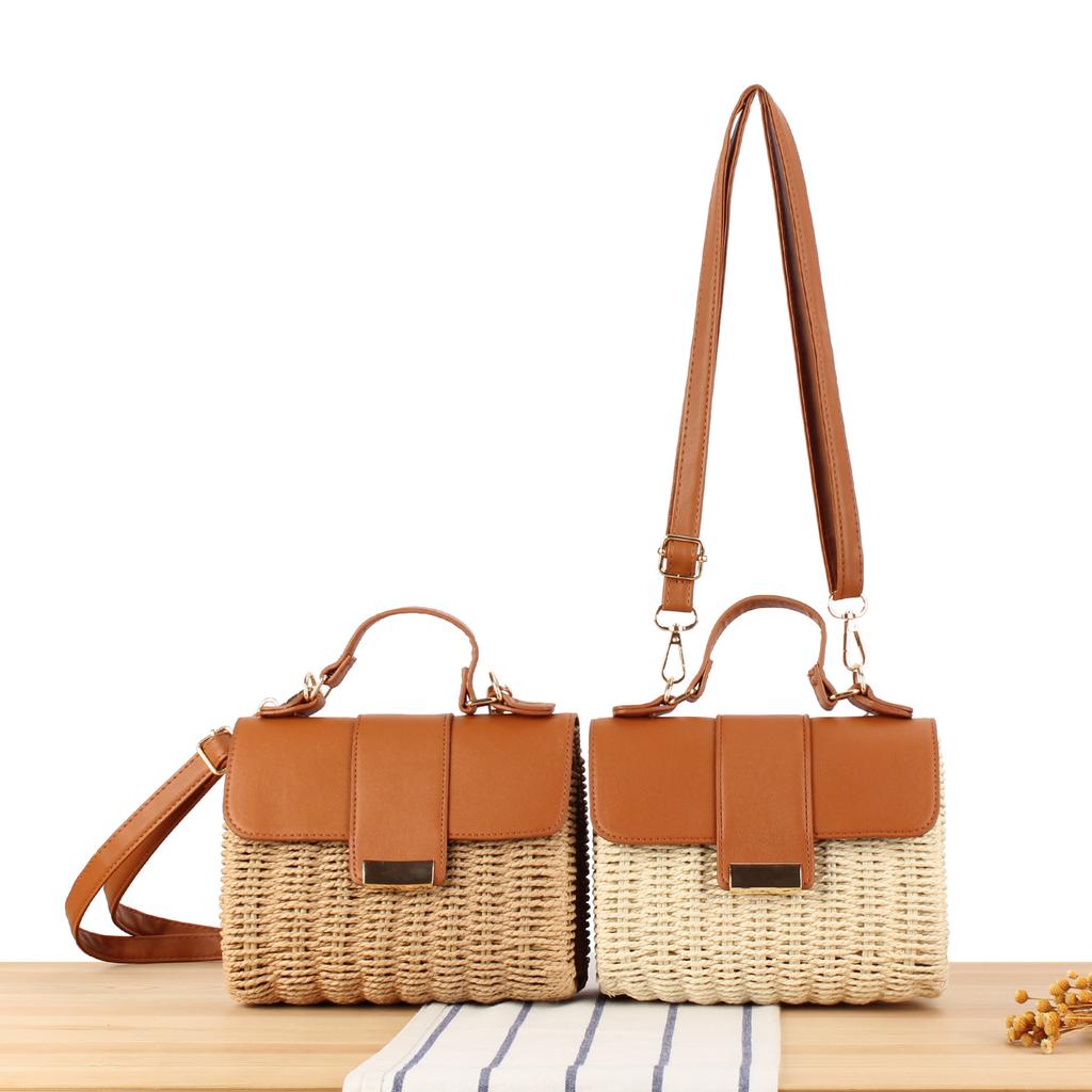 Naujiena Moteriška Madinga Boho Šiaudinė Rankinė - Reguliuojama Per Petį ir Viršuje Rankena Nerta Piniginė Atostogų Būtinybėms & Kasdieniam Važiavimui