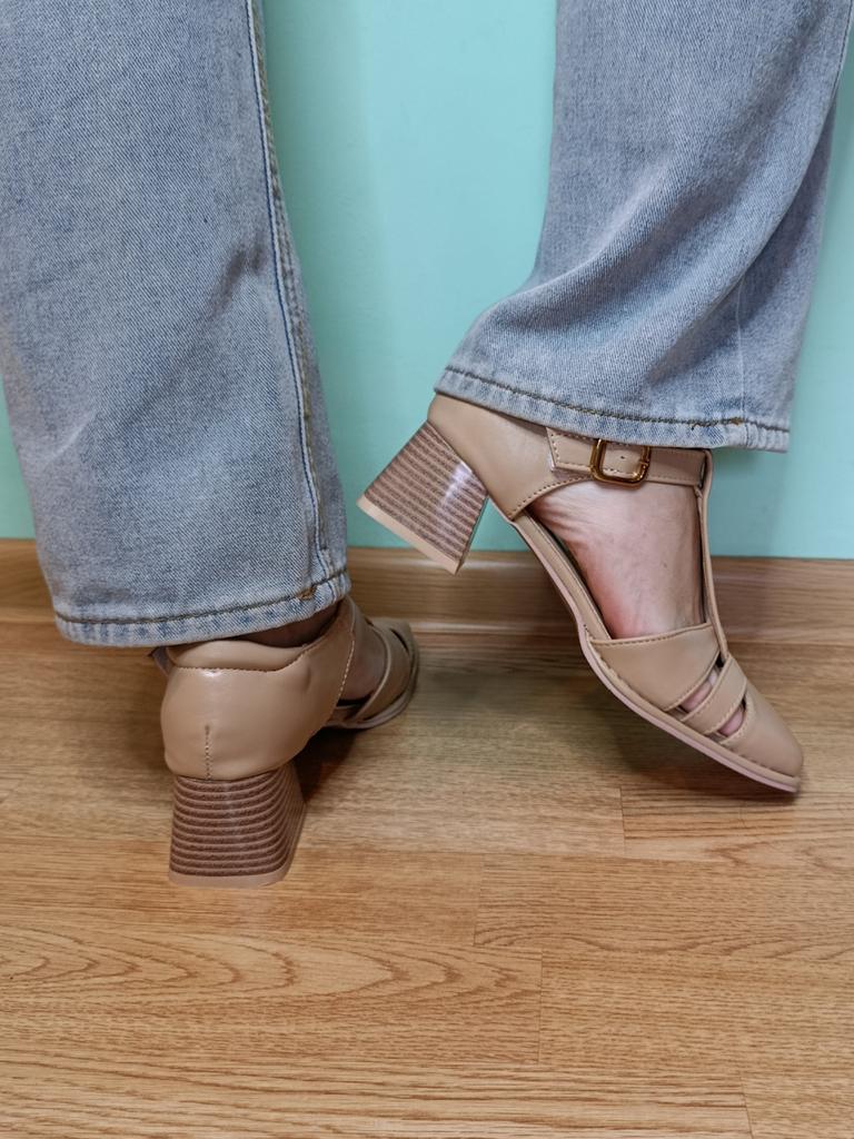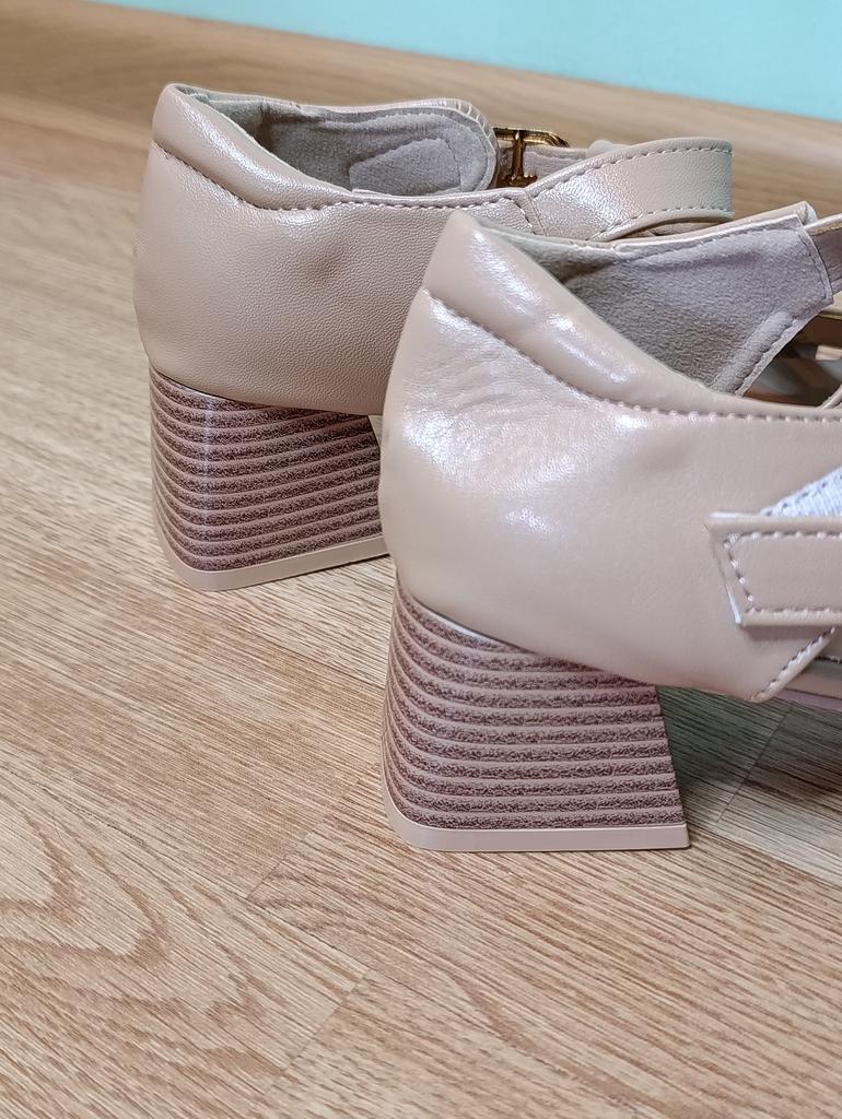 Moteriškos basutės su stabiliu kulnu, pagamintos iš vizono spalvos dirbtinės odos. Klasikinis dizainas visada aktualus ir taps nepakeičiamu garderobo elementu. Padas – blokinis, kulnas platus, apvilktas. Kulno aukštis 6,5-7 cm. Dydis 40 tinka 25 cm pėdai. Yra šiek tiek rezervo.. Rekomenduoju.👍👍👍