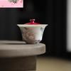 Hand Drawn Pile Carved Gold Peony Flower Mouth Covered Bowl Tea Cup
