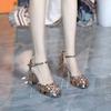 Moteriški bateliai Mary Jane su blizgučiais 2025 nauji vasaros sandalai aukštu kulnu kvadratiniu priekiu švelnaus temperamento vieni batai