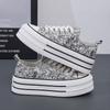 Low-top canvas shoes women's printed thick-soled heightening graffiti canvas shoes women's new student board shoes