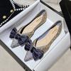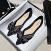 pointed flat shoes women's new sequins single shoes bow shallow mouth beanie shoes spring and autumn large size
