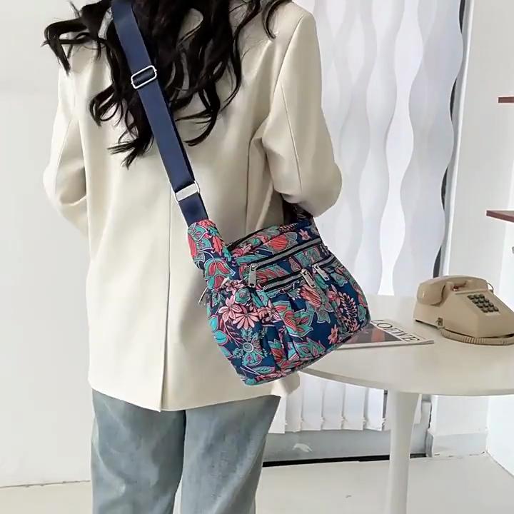 2025 New Printed Nylon Shoulder Bag Multi-pocket Large-capacity Lightweight Waterproof Crossbody Bag and Multi-layered Middle-aged Mother Bag