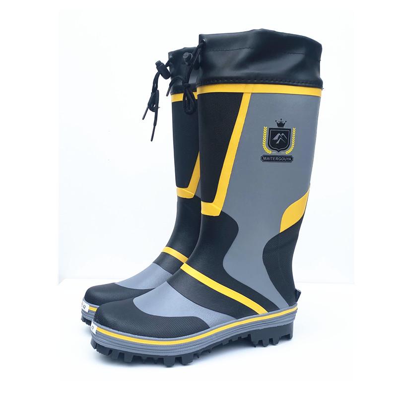 Vyriški neslystantys aukštakulniai vandeniui atsparūs guminiai lietaus batai su plieniniais padais - kvėpuojantys, madingi žvejybai